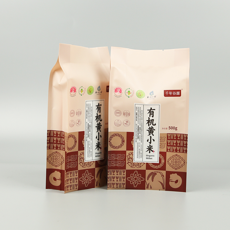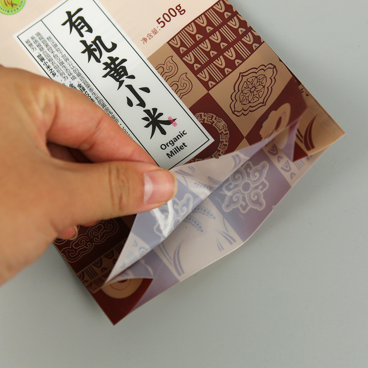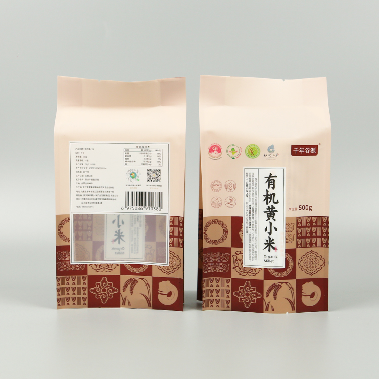 | 附加功能 | 黃小米包裝袋頂端帶有扣手,背封效果 |