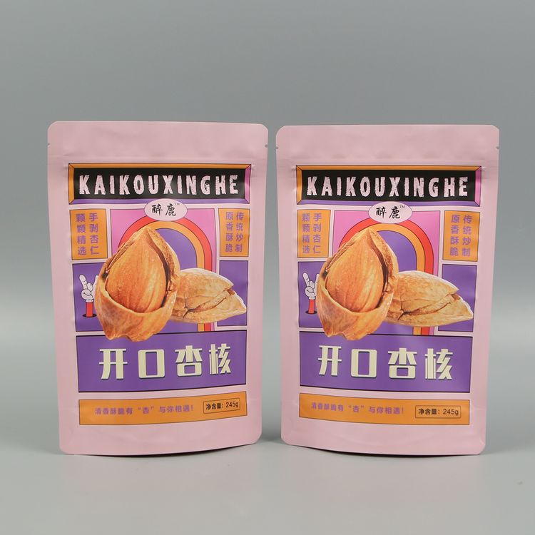 自立拉鏈袋的設計讓杏仁可以穩穩地站立在貨架上或桌面上
