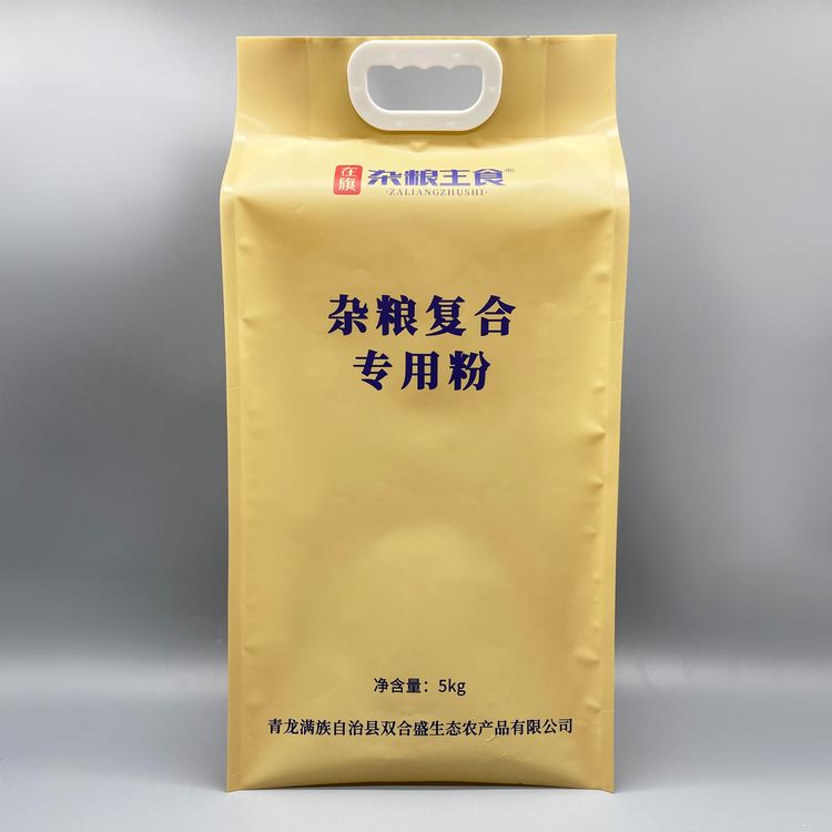 | 附加功能 | 黃小米包裝袋頂端帶有扣手,背封效果 |
