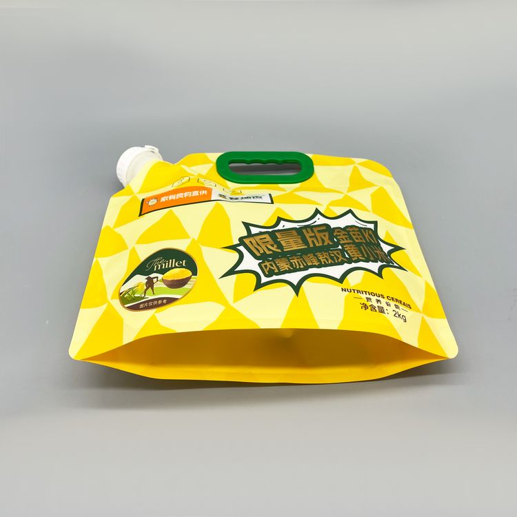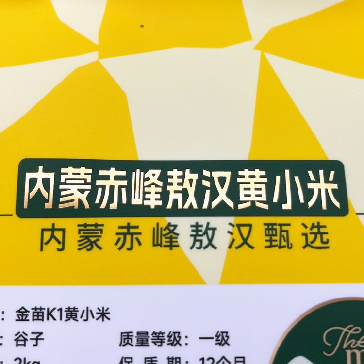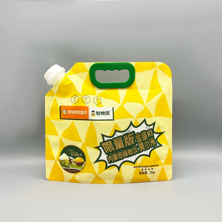 黃小米包裝袋頂端帶有扣手,背封效果 |