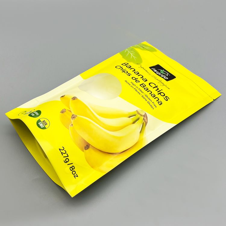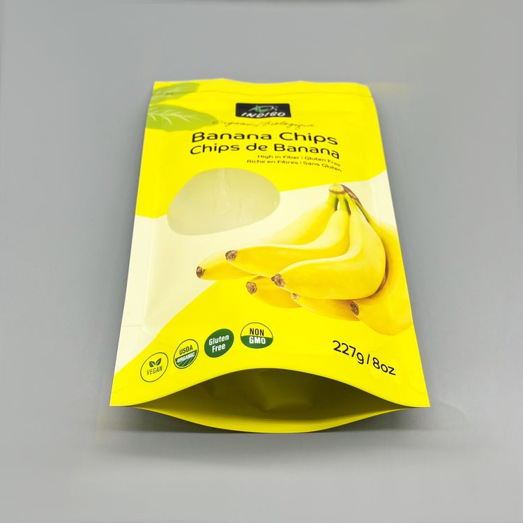 陰陽鋁材質外貿出口香蕉片自立袋結合圓形開窗與拉鏈設計,